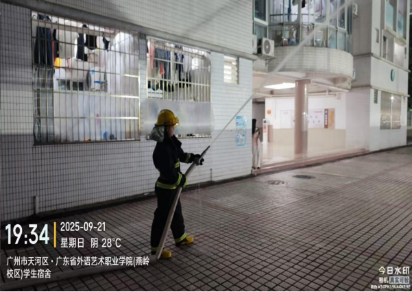 日常排查与专业核验双管齐下:联合天河区燕塘消防站开展月度消防例行检查,重点核查消控室持证上岗情况、32处室外消火栓水压测试(全部达标)、教学楼与宿舍疏散通道畅通度。对检查发现的2处消防指示灯故障当场标记,联动后勤部门24小时内完成更换;完成图书馆消防设施升级验收。