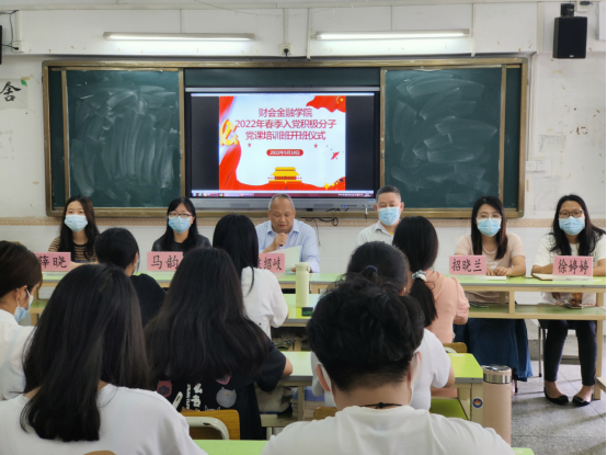 中共中央办公厅印发的《关于推动党史学习教育常态化长效化的意见》中指出,“坚持把弘扬伟大建党精神作为推进党史学习教育常态化长效化的重要任务,作为培育党内政治文化的重要内容,作为践行社会主义核心价值观的重要抓手,融入党员、干部学习教育的日常,体现在干事创业的平常,做到见人见事见精神”。为切实加强入党积极分子教育培养,进一步提高入党积极分子的党性修养,5月18日,财会金融学院2022春季入党积极分子党课培训班在龙洞校区乐教楼405教室顺利开班。财会金融学院党总支书记袁绍岐、院长钟志恒、党总支副书记马韵、专职组织员薛晓、团总支书记招晓兰、学生党支部书记徐婷婷,以及财会金融学院龙洞校区全体2021级入党积极分子参与了本次开班仪式。