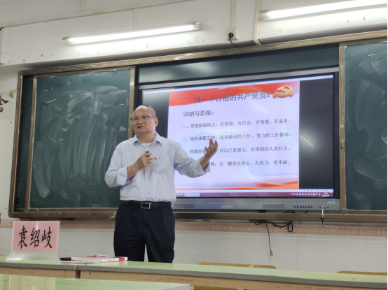 接着,袁绍岐以《如何成为一个合格的党员》为题,开始了本次党课第一讲。