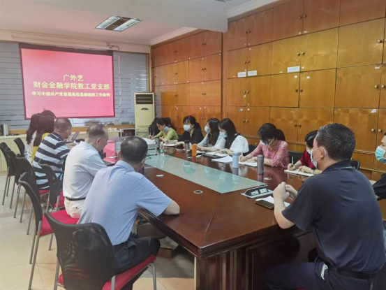 6月15日下午,财会金融学院教工党支部召开龙洞、天平架和海珠各校区的党小组会议,各党小组分别由党支部书记杨立君、支委刘晓凌、党员郑雪柳带领,共同学习了《中国共产党普通高等学校基层党组织工作条例》(以下简称《条例》)。