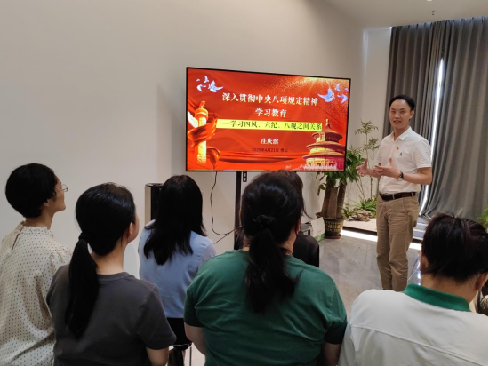 参观结束后,学院党总支副书记庄庆滨为大家带来了一场关于八项规定精神的微党课。他对“四风”问题、六大纪律与八项规定的关系进行深入解读,让党员们对八项规定精神有了更加全面且深入的理解,为大家在实际工作和学习中践行规定提供了有力指引。