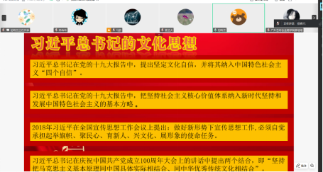 团委书记招晓兰带领大家学习习近平文化思想的核心要义。她指出,习近平文化思想立足世界百年变局与民族复兴关键期,强调以“两个结合”夯实文化根基,通过“七个着力”构建实践路径。党员老师既要赓续中华文脉、传承优秀传统文化,又要以创新姿态推动文化现代化,为建设中华民族现代文明贡献青春力量,让马克思主义文化理论中国化时代化成果在青年群体中落地生根。