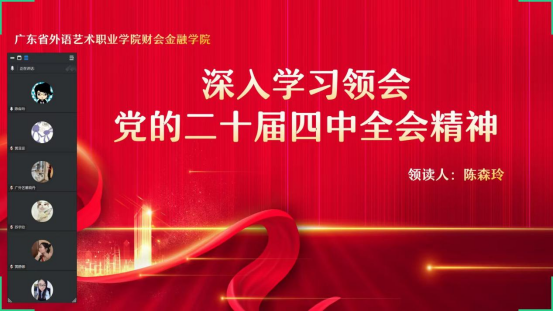 为深入学习宣传贯彻党的二十届四中全会精神,落实将全会精神作为当前和今后一个时期重大政治任务的要求,11月20日至21日,财会金融学院各党支部结合自身特点开展系列学习活动,推动全会精神入脑入心、落地生根。