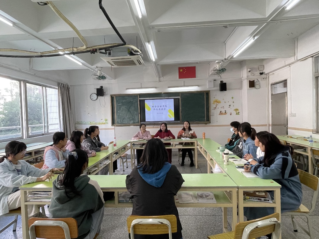 近日,财会金融学院已完成2021级新生入学适应的问卷调查,为了进一步了解学生的学习生活状况、倾听学生的心声,11月24日下午,财会金融学院在乐教楼304课室召开2021级龙洞校区师生代表座谈会。学院党总支副书记马韵、副院长陈森玲以及班主任李静老师出席了座谈会,并与来自2021级大数据与会计专业的12名学生代表进行了交流。