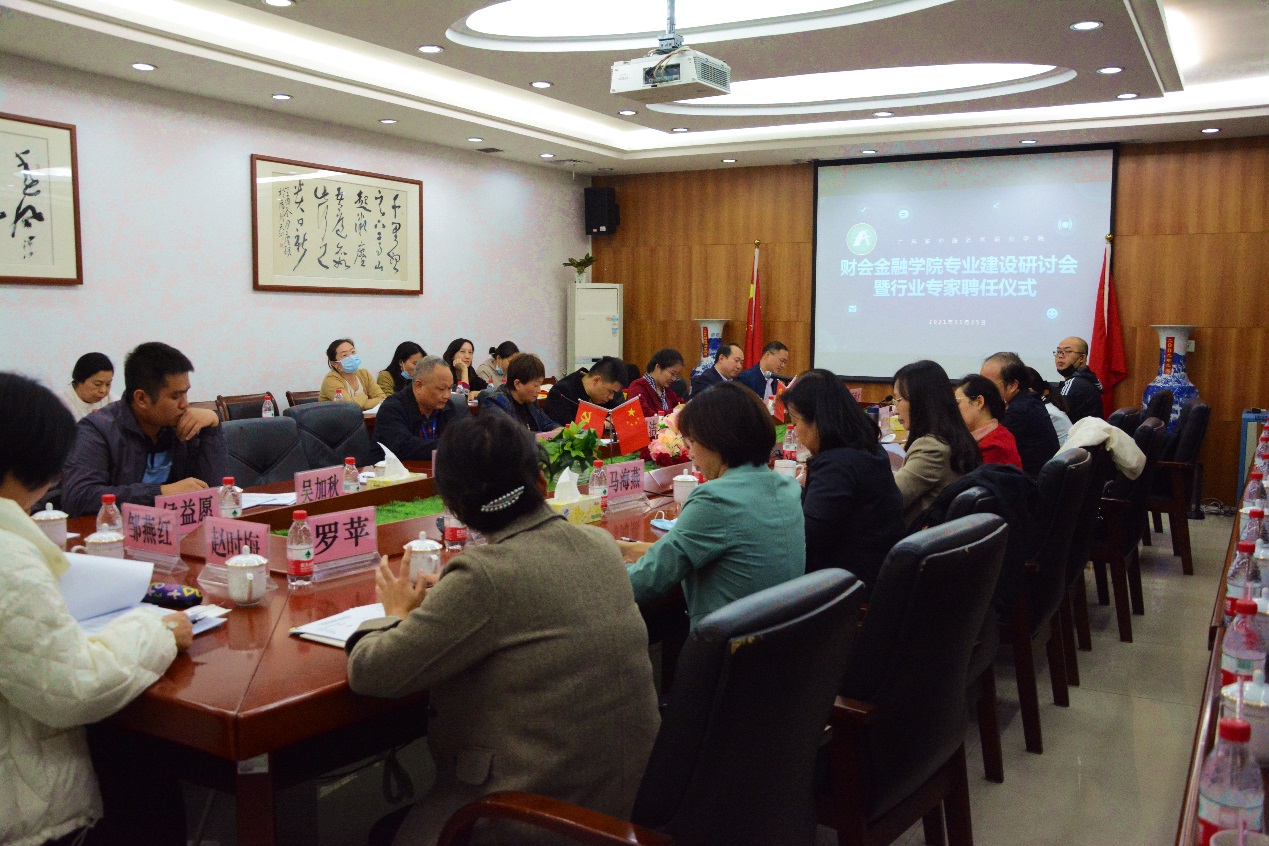为贯彻党对职业教育发展的指导精神,优化财会金融学院“十四五”发展规划,科学打造高水平的专业群,为数字经济社会发展培养高素质技术技能人才,第一届(2021年)财会金融学院专业建设研讨会暨行业专家聘任仪式,于11月25日在龙洞校区敏行楼会议室顺利召开。学校副校长刘洁,教务部、财会金融学院主要负责人,职业院校同行专家杨则文、潘美意、赵红英、陈海雯等4位财会金融专业教授,来自会计师事务所、税务师事务所、银行等财会金融领域经验丰富的10位行业专家,以及学院财会和金融专业骨干教师共40余人参加了此次研讨会议。财会金融学院党总支书记袁绍岐主持本次会议。