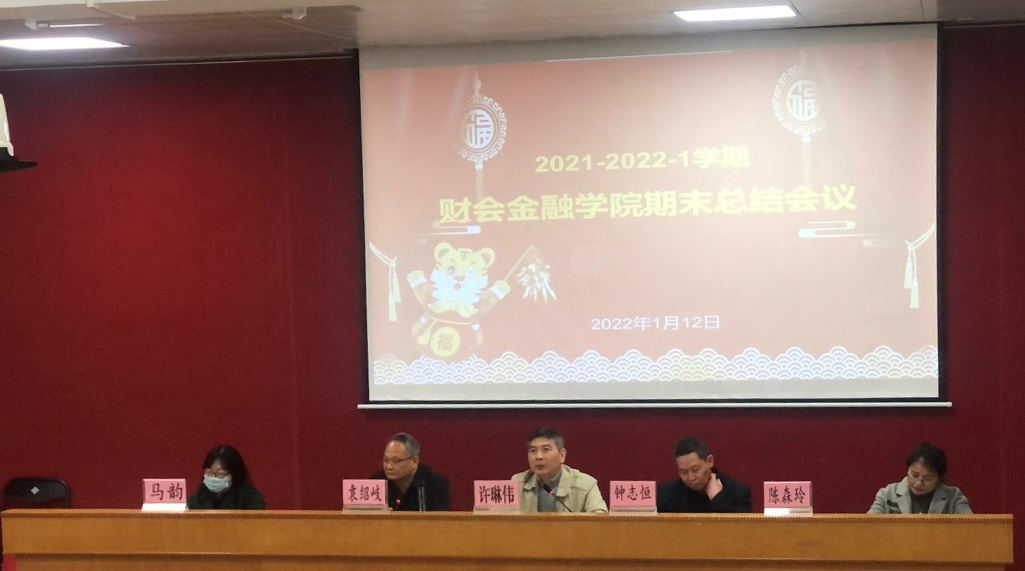 岁序易,华章新。1月12日下午,财会金融学院在龙洞校区乐教楼304远程课室召开2021-2022-1学期期末总结会议。学校副校长许琳伟、财会金融学院党政领导班子及学院全体教职工参加了会议,学院党总支书记袁绍岐主持会议。