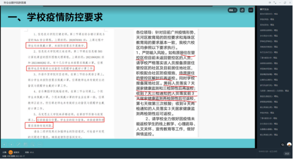 制度学习不停歇,提高教工思想认识。3月16日下午,学院第四期制度学习例会按期在钉钉群上召开,运营推广教研室主任谢涛洪带领全体教工集中学习学校疫情防控各项要求,并结合《金鼎娱乐最新官方网址校企合作管理办法》强调了教学过程和专业实训室使用中的防疫要求,进一步强化了全体教职工对防疫防控工作重要性的认识。