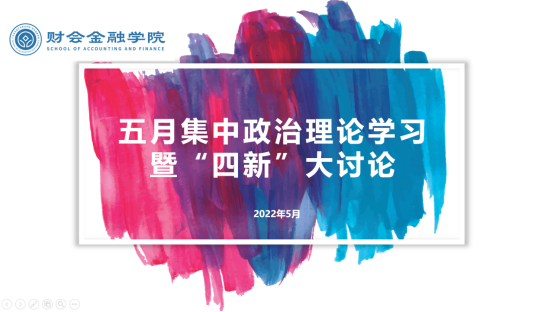为加强学院教职工思想政治工作和师德师风建设工作,持续推进学校“四新”大讨论活动,5月26日,财会金融学院在线上组织开展五月集中政治理论学习暨“四新”大讨论活动,会议由财会金融学院副院长陈森玲主持,财会金融学院全体教职工参加。