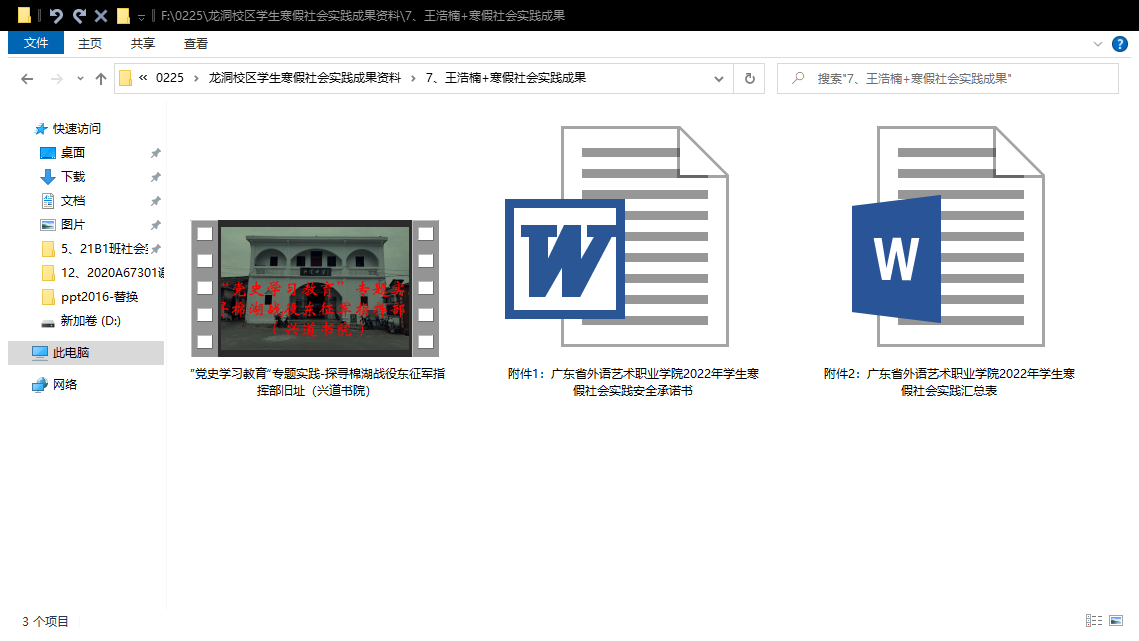 寒假期间,龙洞校区财会金融学院和外语外贸学院的学生在严格遵守当地疫情防控相关要求下,以个人和团队为单位积极参加各项社会实践活动。本次社会实践包括“党史学习教育”、“返家乡”、“喜迎冬奥盛会”、“青春与共·时代同行”迎接建团100周年和“科技创未来”等五个专题的实践活动,同学们通过企业实践、公益活动、社区服务、绘制海报、拍摄视频等形式呈现了丰富的社会实践成果。