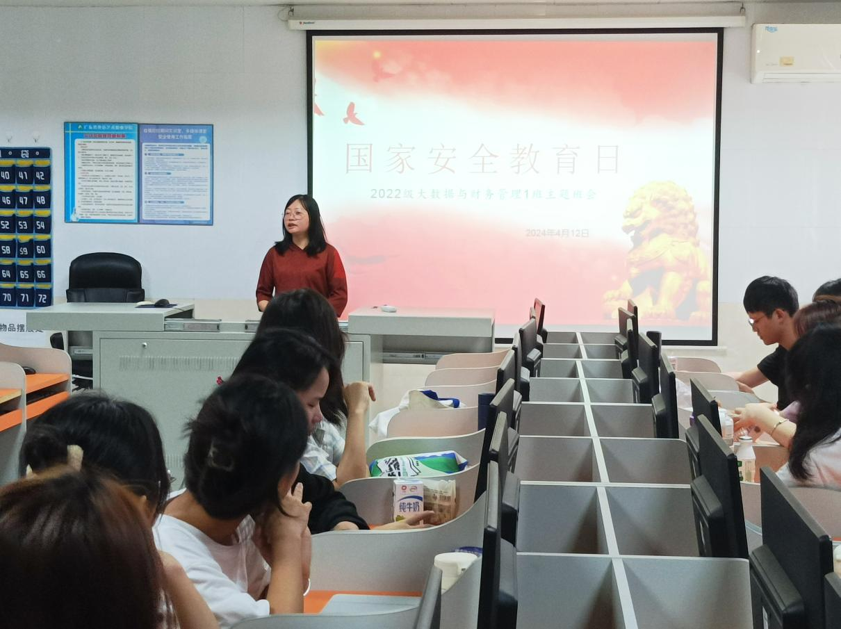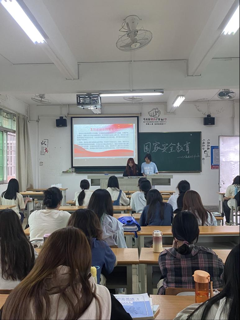 首先来看看23级大数据与会计2班的班会现场。学生代表通过PPT展示的方式,运用生动的语言和鲜活的案例,带来了一场关于国家安全知识的精彩讲解,帮助同学们进一步理解国家安全的深刻内涵和重要意义。同学们意识到,原来国家安全不仅是国家的事情,它与我们每个人的生活都息息相关。作为学生,也可以用自己的方式,为维护国家安全贡献一份力量。