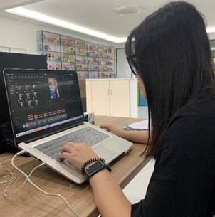 (图:李晓菲老师前往谢秋月实习的公司指导工作)