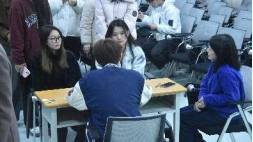 签约仪式后,现场随即开展了分组面试,怀揣着对实战项目的热忱与憧憬,众多学生踊跃参与。在面试过程中,学生们积极与面试官交流,他们条理清晰地阐述个人见解,从容应对面试官抛出的各类问题,展现出对项目的高度热情和自身扎实的专业素养。现场气氛热烈而有序,面试官们也对学生们的表现予以充分关注,不时与学生深入探讨,交流互动氛围浓厚。