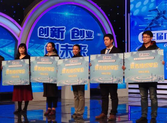(图:创新创业学院代表上台领取“优秀组织单位奖”)