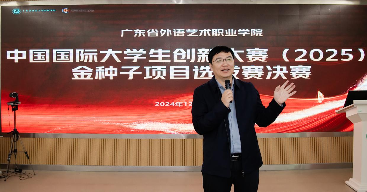 为贯彻党的二十大精神,深入实施习近平总书记关于教育的重要论述以及给中国国际大学生创新大赛的重要回信精神。我校于12月2日在五山校区综合楼705智慧课室隆重举行了金鼎娱乐最新官方网址首届中国国际大学生创新大赛(2025)金种子项目选拔赛决赛。学校党委副书记黄泽瑜亲临现场致辞,国赛评审专家、创新创业学院执行副院长罗光晔及参赛团队师生100余人参加了本次活动。