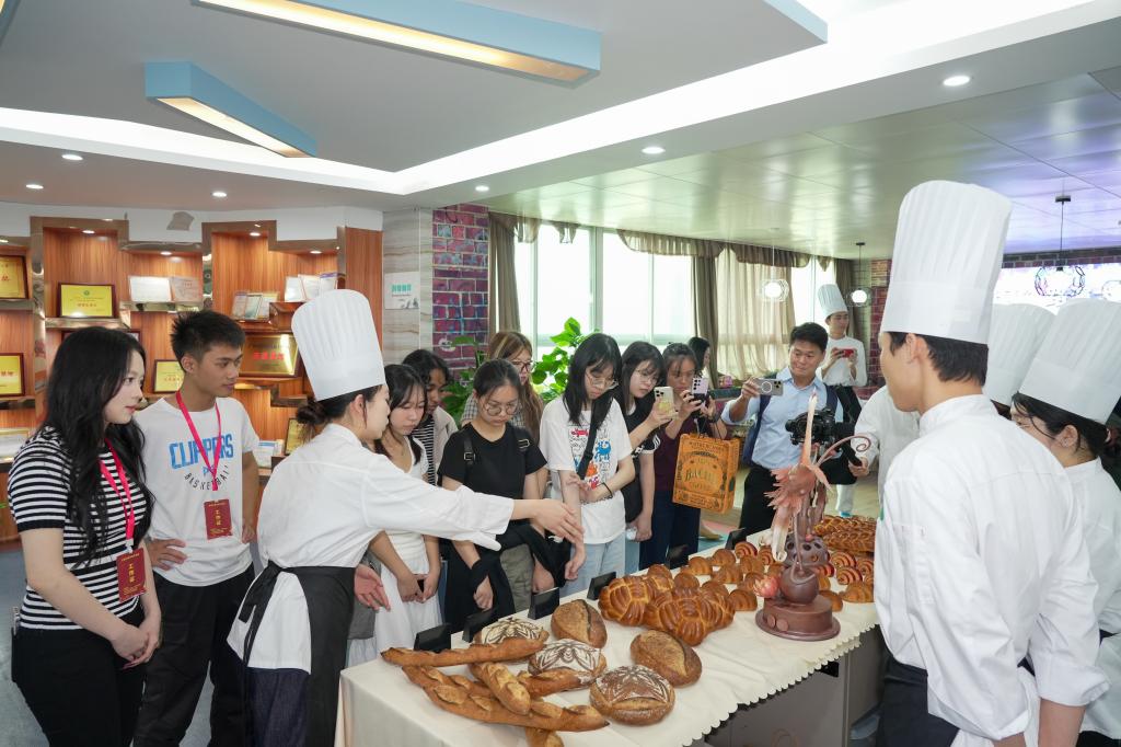 在项目团队分享环节,我校餐饮旅游学院“艺焙臻品”团队聚焦现代健康理念,介绍了其打造高品质面包产品的创新实践,从原料到工艺的严格把控。“染采”团队展示了传统技艺与现代设计融合的魅力,通过创新让古老的植物染技艺焕发出新的生机。淡马锡理工学院的两个项目团队聚焦环境保护主题,深入研讨并分享了创新方案。双方学校师生围绕项目内容展开了深入而富有成效的交流。