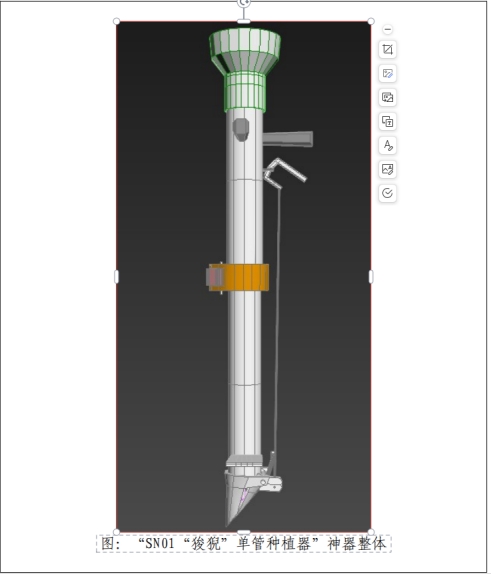 为了减轻农民的劳力成本和降低农民耕种的体力消耗强度,缩短种植的时间成本,提高农民种植的效率,根据蒜的普遍直径大小居于30mm-45mm,设计管道直径在2cm,适合农民普遍身高,制作成本低,操作简单轻便的SN01“狻猊”单管种植器。