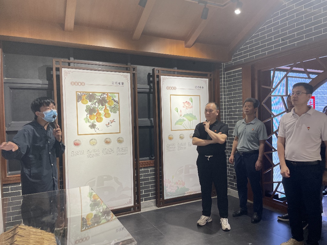 沿着神农草堂党员教育的主线路,大家依次参观了中国医药文化长廊、河图洛书墙、医药史浮雕墙、民政草药园等园区场所,了解了优秀的传统中医药文化。在党建文化和廉洁文化展厅,党员聆听了杨殷、向秀丽两位“双百人物”的先进事迹,感悟榜样力量,更好汲取奋进动力。此外,党员还体验了一次“廉药”辨识,通过观看“以药喻廉”的教育展板,了解中医药“治未病”、“正气”理念与党风廉政建设“防患于未然”的启迪联系,教育引导党员要“先治身后养生”,树立正确的价值观,保持“廉”的本色。
