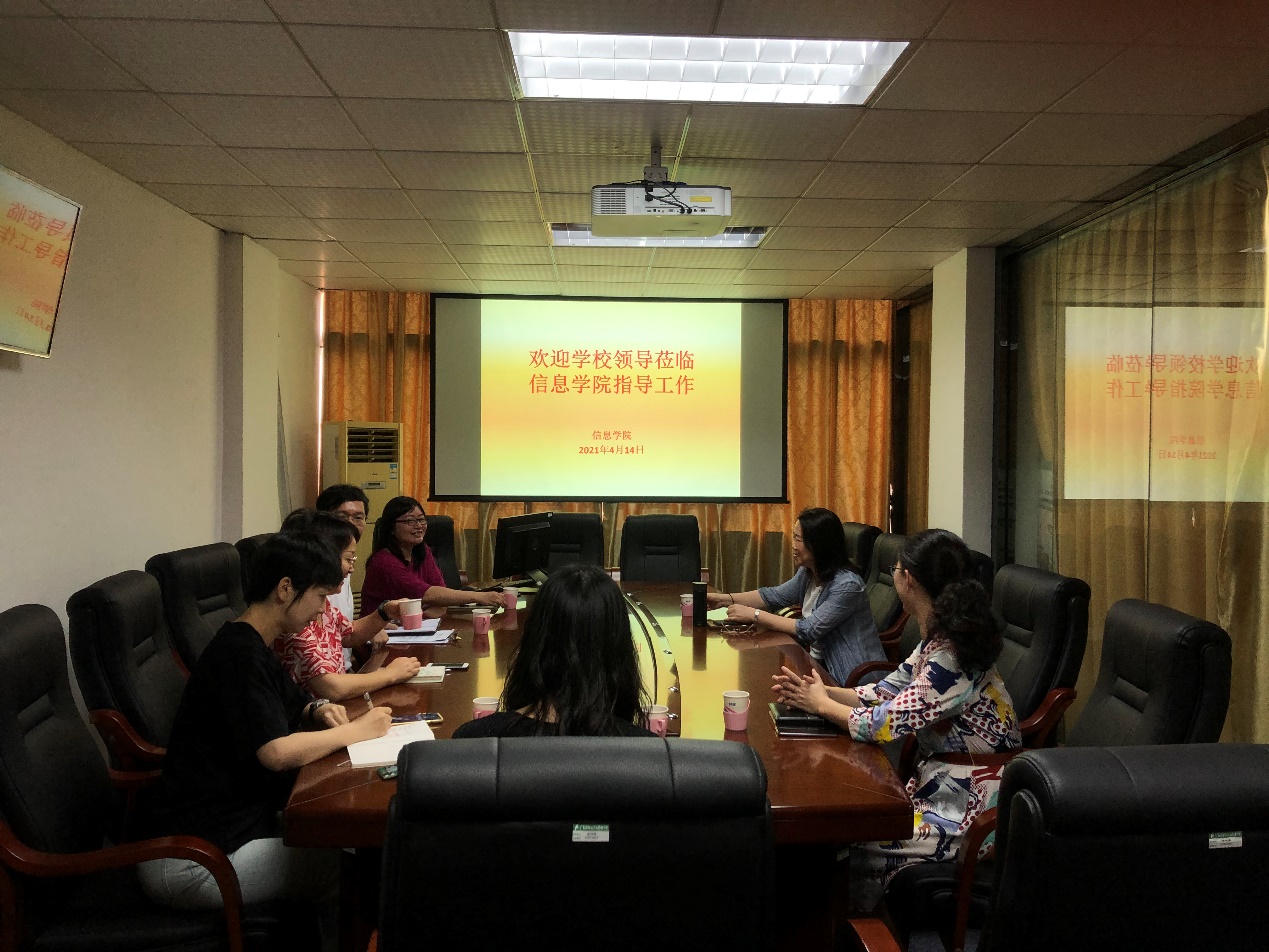在信息学院,卢羡文听取了学院关于党建工作、学生就业工作、专业建设、教学管理等方面的汇报。她对学院工作作了具体指导:一是进一步推进作品化教学改革,全体教师要面向所有学生开展课程思政教育教学,并形成有特色的思政作品;二是学生就业工作要向前端迁移,要从学生入学开始就开展调研、跟踪、分析以及指导,解决学生的思想问题以及实际困难;三是提升专业建设水平,专业群申报材料需要对标、凝练、提升,并以此为契机,促进信息专业群的建设。