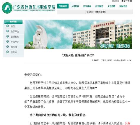 图:“文明入馆,拒绝占座”倡议书