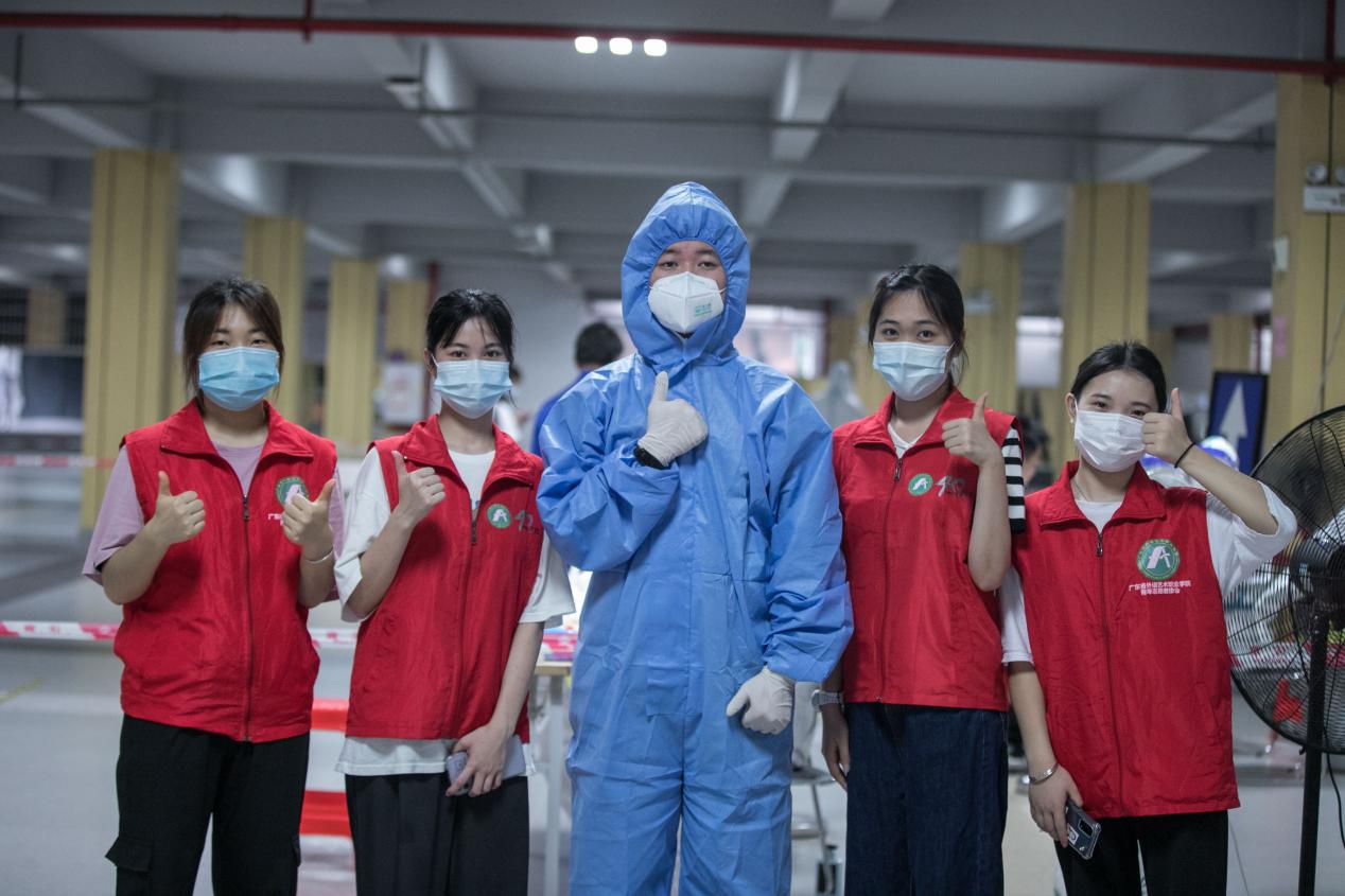 “同学,接种疫苗往这边走……”“同学请扫码填写资料……”信息学院身穿“蓝马甲”的志愿者们积极配合医疗人员对广外艺接种师生进行流程引导,志愿者们从学校到卫生站的路口坚守岗位默默奉献,为同学们接种疫苗保驾护航。当天安排近80多名青年志愿者,扎实做好待接种人员有序排队、维护现场秩序、体温测量、健康问询、发放疫苗接种知情通知书、安排接种后人员进行留观和后勤保障等志愿服务工作。除此之外,信息学院学生党员、志愿者们还通力配合做好全校核酸检测工作,在服务一线的现场,总能看到信息学子分工合作帮助同学们的身影。“蓝精灵”们穿上防护服,核对师生信息、发放条形码,维持现场秩序,引导排队人员做好信息登记等工作,有助于构筑校园健康防护线,建立起免疫屏障,为战“疫”注入一股暖流。