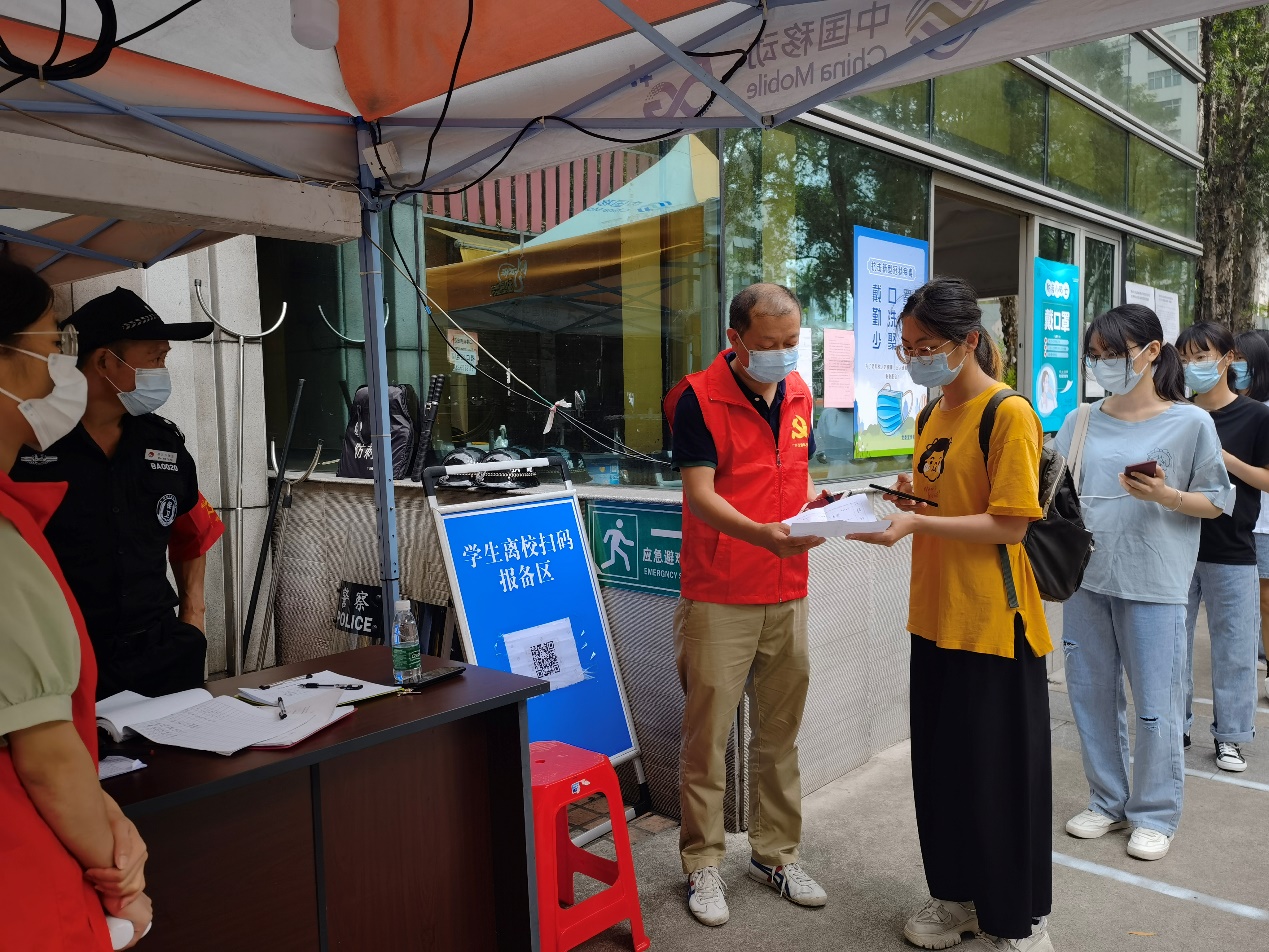 除党员志愿者积极投入到校园疫情防控工作外,学校领导下沉一线,走访慰问端午假期留校学生和2021届毕业学生,了解学生生活、学习、就业等方面的难题和需求。