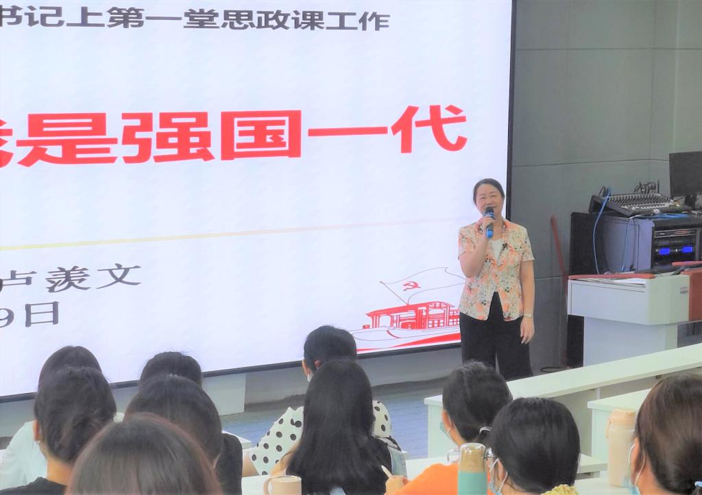 10月9日上午,党委书记卢羡文在燕岭校区为2019级文秘专业学生讲授“思政第一课”《赓续红色血脉,我是强国一代》,省委教育工委党史学习教育第六巡回指导组组员何聪列席旁听。她和同学们一起回顾总结了中国共产党各个时期的丰功伟绩,要求同学们继承和发扬伟大建党精神,让红色基因、革命薪火代代相传。