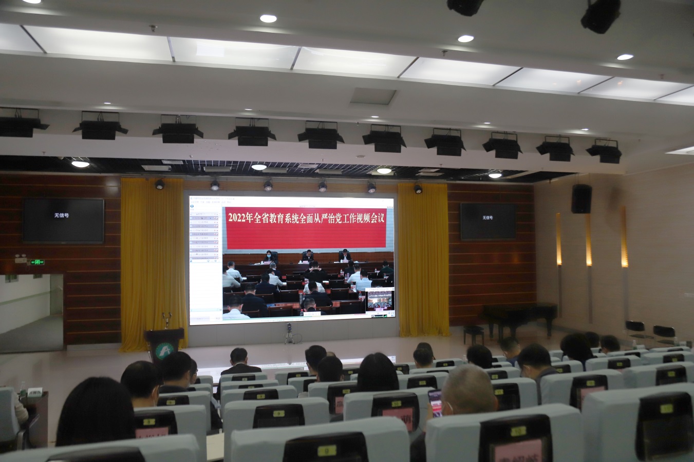 3月10日下午,省委教育工委召开2022年全省教育系统全面从严治党工作视频会议。会议坚持以习近平新时代中国特色社会主义思想为指导,全面贯彻党的十九大和十九届历次全会精神,深入学习贯彻十九届中央纪委六次全会和十二届省纪委七次全会精神,总结梳理2021年全省教育系统全面从严治党工作,研判部署2022年工作任务。省委教育工委委员、省教育厅党组书记朱孔军出席会议并讲话。省纪委监委驻省教育厅纪检监察组总结部署纪检监察专项工作。省委教育工委副书记、省教育厅党组副书记李大胜主持会议。