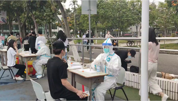 为切实保障广大师生员工的生命健康和安全,筑牢校园疫情防控长城,配合做好新冠肺炎疫情防控工作。燕岭校区于3月16日下午2点以及3月18日上午9点半进行了两次全员核酸检测。