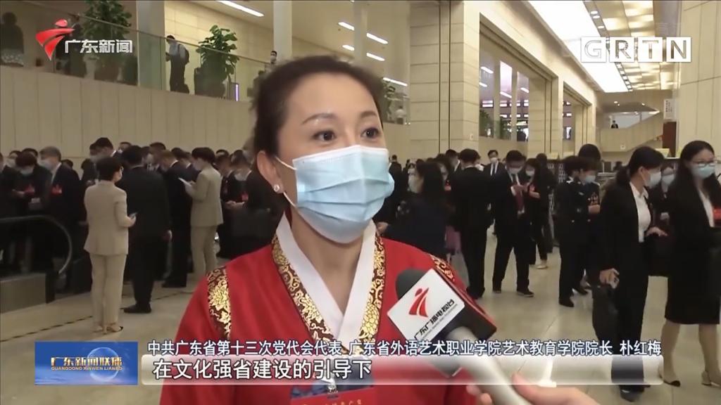 图:中共广东省第十三次党代会代表、我校艺术教育学院院长朴红梅教授参会并接受广东新闻联播采访