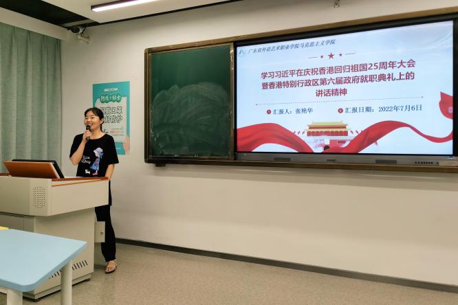 集中学习首先由张艳华老师以讲党课的形式,开展了《习近平在庆祝香港回归祖国25周年大会暨香港特别行政区第六届政府就职典礼上的讲话》的宣讲领学。她从7月1日上午庆祝香港回归祖国25周年大会暨香港特别行政区第六届政府就职典礼在香港会展中心隆重举行导入,从“‘一国两制’实践在香港取得举世公认的成功”“‘一国两制’实践在香港取得的重要经验”“习近平对香港特别行政区新一届政府和社会各界人士提出希望”“习近平强调关心关爱青年人”四个方面对讲话精神进行了全文解读,带领全体党员一起学习。