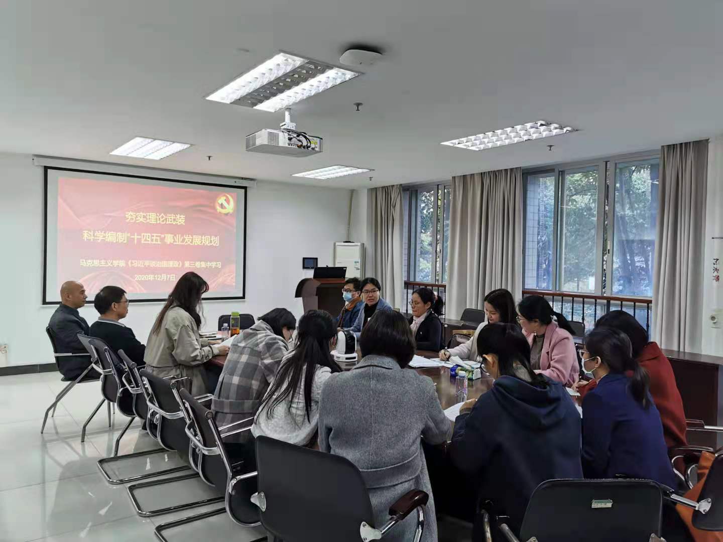 12月7日下午,马克思主义学院在五山校区202会议室开展“夯实理论武装,科学编制‘十四五’事业发展规划”主题学习研讨会,会议由马克思主义学院党支部书记陈英主持,马院全体人员参会。
