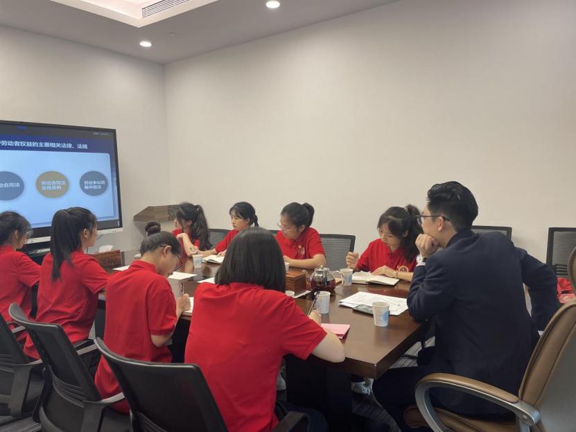 本次法律学习主要围绕劳动者权益保护展开。陈曼兴律师先向队员们简要介绍了律所的单位性质和律师的职业角色,让队员们上课前有初步的认知判断。