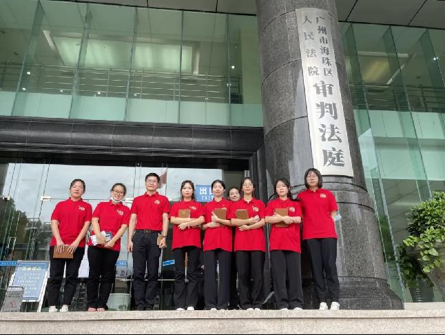 为让队员们近距离接触庭审现场,切身感受法律威严,领会法律施行价值,2023年7月4日,金鼎娱乐最新官方网址马克思主义学院艺法同行社会实践队在李丹丽老师和彭斌老师的带领下,来到广州市海珠区人民法院(以下简称“法院”)进行旁听研学