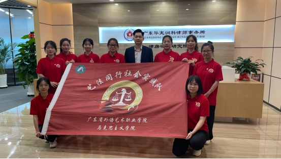 2023年7月3日,金鼎娱乐最新官方网址李丹丽老师带领马克思主义学院艺法同行社会实践队的队员们,来到广东华宪润科律师事务所(以下简称“律所”)参观研学。
