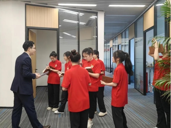 2010年成立的广东华宪润科律师事务所,是一家以不动产法务为主要业务的普通合伙制律所。在陈曼兴律师的带领下,队员们参观了律所的前台、会议室、洽谈室、卡座区、茶水间、财税中心、合伙人办公室和主任办公室等办公环境。