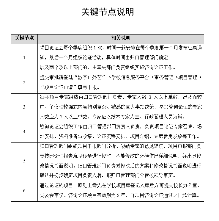 (三)纳入项目库管理的项目有效期为2年,自咨询论证通过之日起计算。2年内由归口管理部门根据学校的实际情况,按学校决策程序及要求提交学校决策。