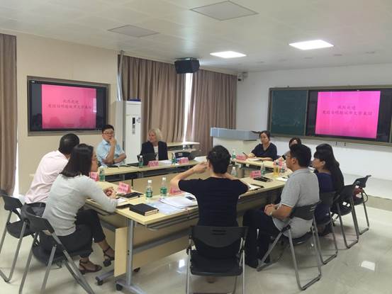 2018年9月18日,英国伯明翰城市大学健康、教育与生命科学部副部长,学术与国际招生的负责人路易斯·托纳教授(Louis Toner),和健康、教育与生命科学部国际合作主任马南博士,来到我校燕岭校区,就学前教育专业专科层次中外合作办学3+0项目的教学外审相关事宜进行沟通。