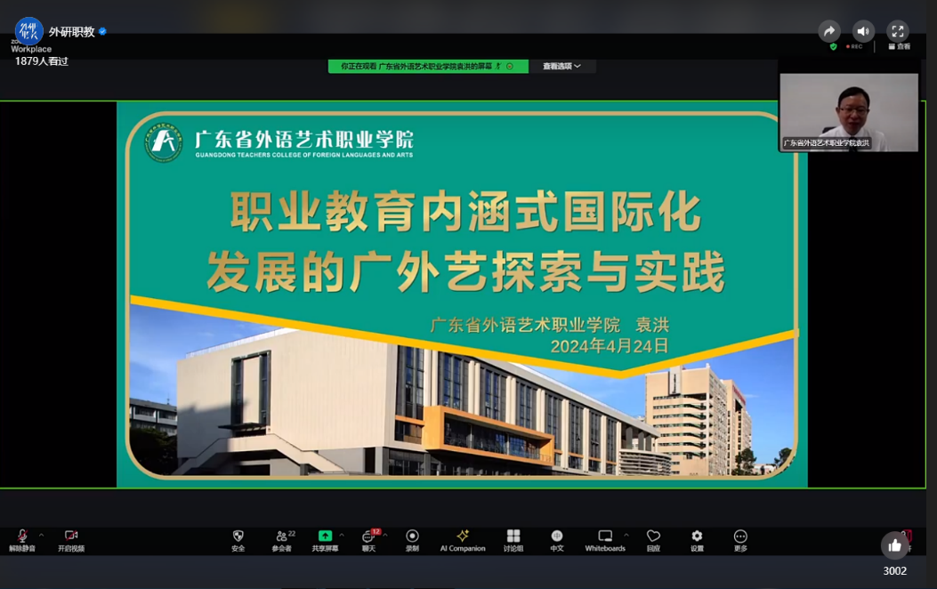 4月24日下午,学校副校长袁洪应邀参加北京外国语大学中国职业外语教育发展研究中心和英国驻华大使馆文化教育处合作举办的中外校长直播间“标准引领 数字赋能 产业育人——中英职业教育发展专题对话”并做经验分享发言。