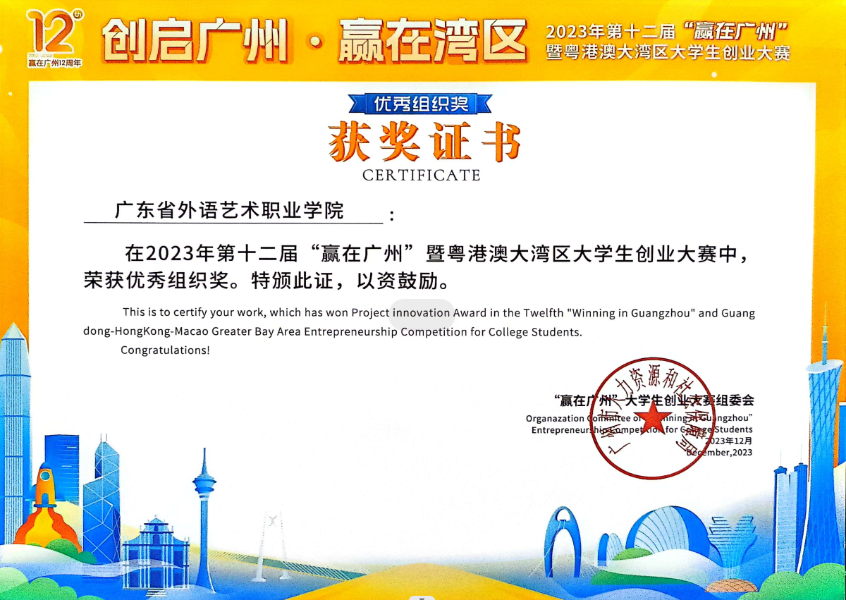 近日,由广州市人力资源和社会保障局主办,广州市人力资源市场服务中心承办的2023年第十二届“赢在广州”暨粤港澳大湾区大学生创业大赛结果公布,我校大学生双创团队在大赛中有1个项目获得“优胜奖”、4个项目获得“创新奖”,3名指导老师获得“伯乐奖”,学校荣获“优秀组织奖”。