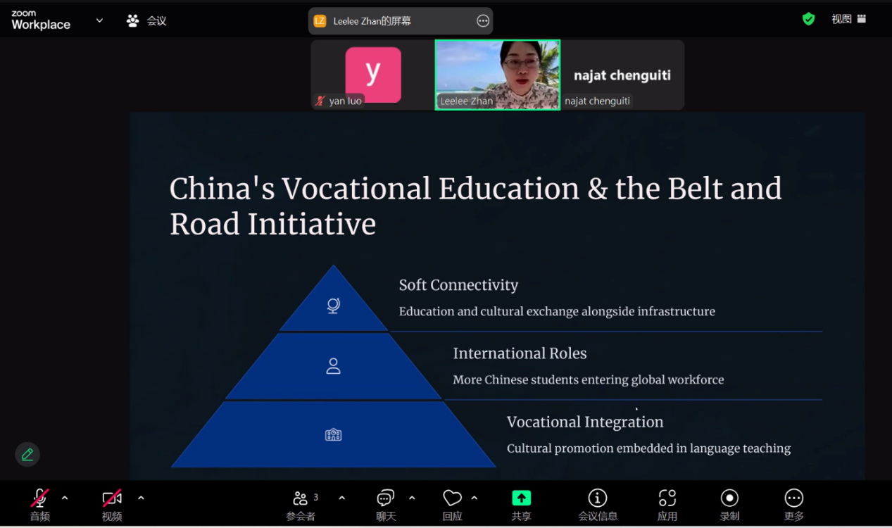 本次培训是学校与摩洛哥职业教育与就业发展办公室合作的重要成果之一。学校将持续强化“外语+技能”和“技能+外语”双模式育人,形成国际化高技能人才培养显著优势,向“一带一路”国家输出职业标准,持续加强我国职业教育品牌国际影响力。