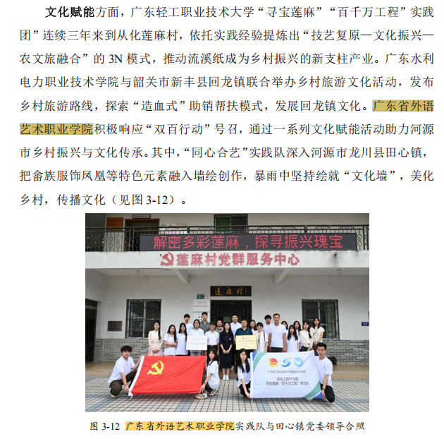 近日,广东省教育厅发布《2024年广东省高等职业教育质量年度报告》。我校凭借在文化传承、合作办学与国际交流等方面的突出成果,成功入选该年度报告典型案例2个,在正文中列举做法2个。