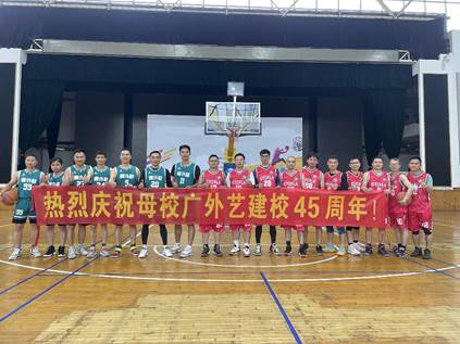 参加比赛的两支队伍分别为学校的“校教职工篮球队”和由 20余名91级-01级校友组成的“广外艺大湾区校友篮球队”。教工、校友用运动的激情向广外艺祝福,以球会友、赛出精彩、共叙情谊。