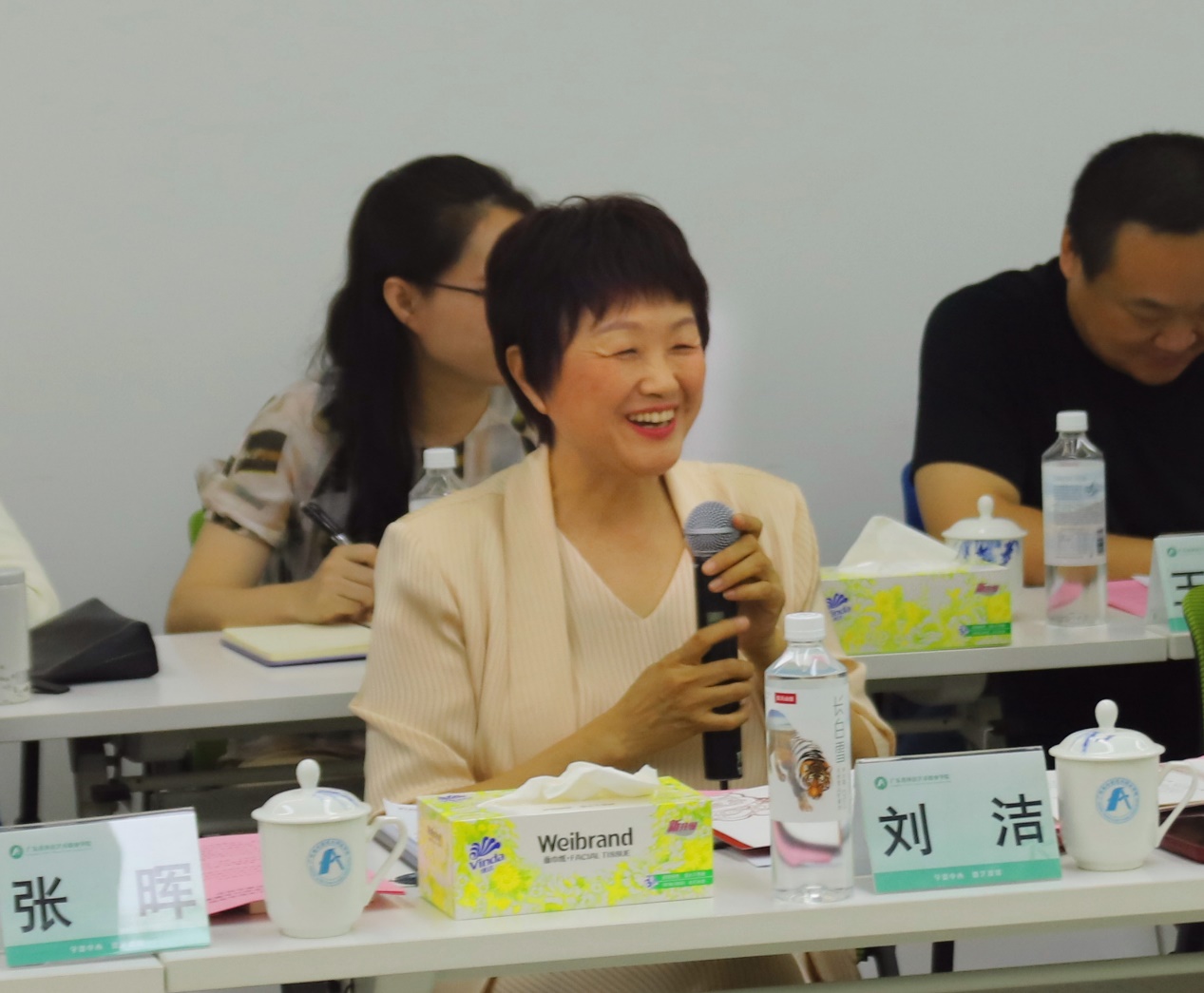音乐舞蹈学院院长陈路芳针对近年来音舞学院产教融合、校企合作以及教改情况,从“1个目标、2个方向、1门心思、3大突破”介绍了学院从“入圈”到“破圈”的教育教学改革之路。音乐舞蹈学院副院长王琼旎则针对音舞学院教改情况的具体措施和内容进行讲述。音乐舞蹈学院专业带头人李贞教授从课程思政角度分享了学生职业教育素养培养提升的典型范例。