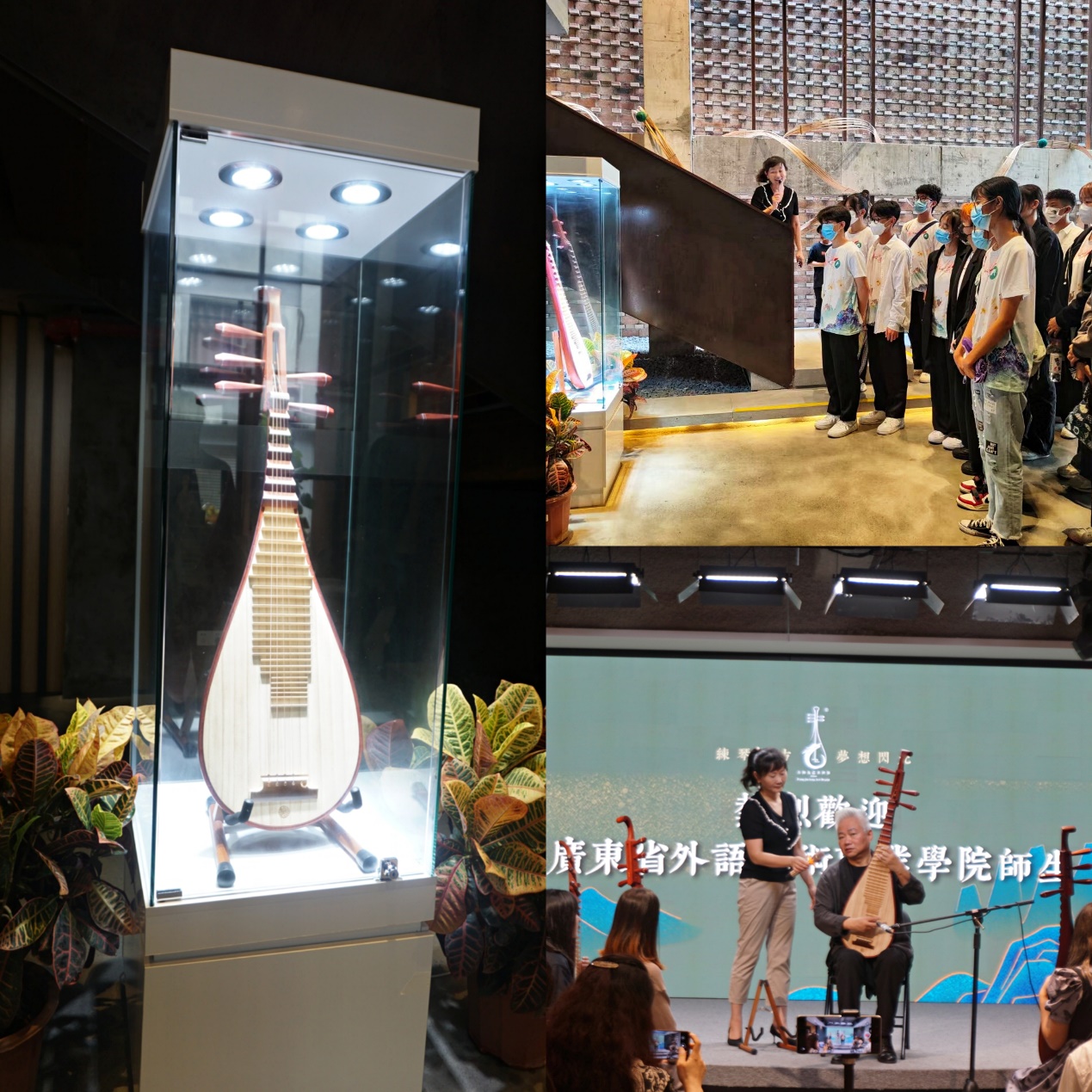 活动伊始,方锦龙艺术世界负责人为我院师生介绍了广东音乐发源地——沙湾以及国乐教学基地的选址和设计理念。而后,我院琵琶专业学生在廖予宁副教授和艺术世界首席助教老师组织带领下,尝试以五弦琵琶练习演奏广东音乐《旱天雷》,并得到了方锦龙老师亲自指导。