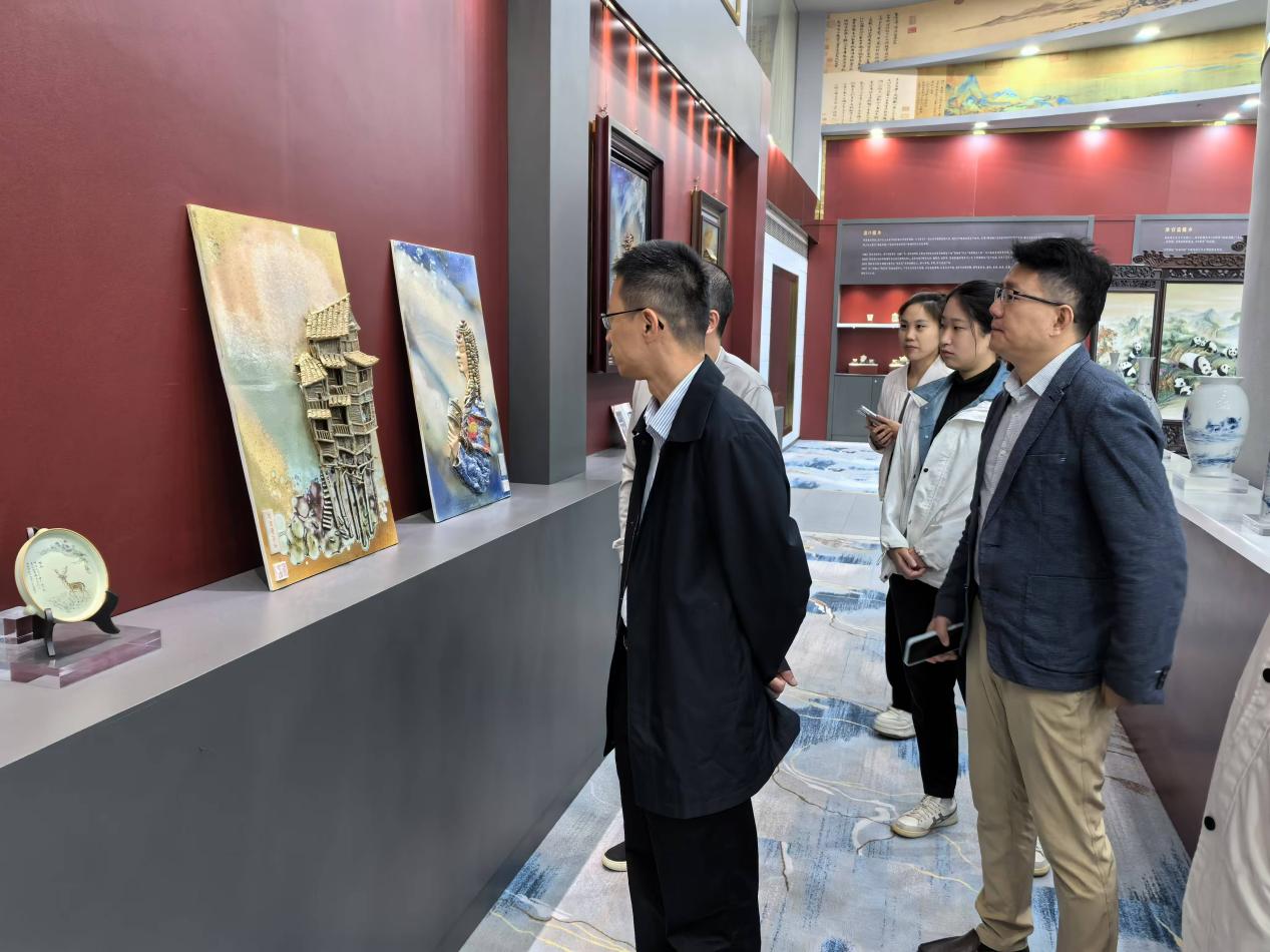 周泽堂是一家致力于弘扬中华优秀传统文化的企业,主要产品是以汝瓷的研发、销售和宣传推广为主,涵括陶瓷、书画、雕塑等艺术于一体的多元化发展文化公司,还有茶叶、休闲康养以及太极等文化服务项目。除了广州总部,公司还在郑州、天津、景德镇、昆明等地设立了分公司。走访过程中,周楚钦介绍了公司的发展历程和近年来主要倾力打造的艺术品,着重推介了艺术馆和国家级非物质文化遗产项目——陶瓷微书代表性传承人王芝文先生合作推出的汝瓷与微书相结合的有关艺术品及合作成效。宋窑汝瓷是周泽堂主打的系列汝窑瓷器,周泽堂推出粉青色汝官窑瓷器,最大限度还原宋代汝窑的艺术和融汇其中的东方文化。