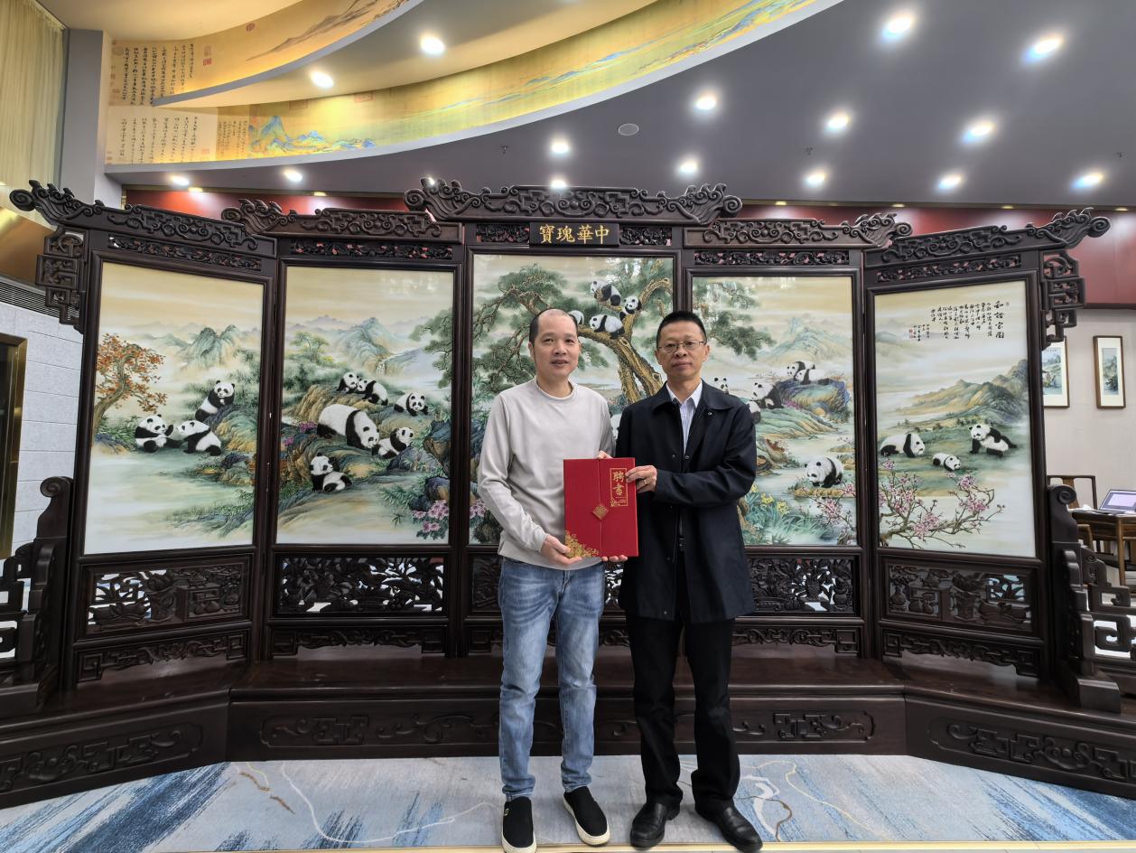 图:黄泽瑜代表学校颁发“校外就业导师”聘书