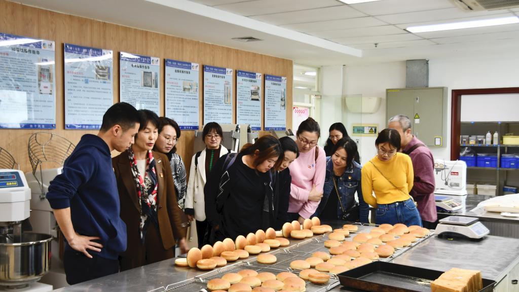 随后,中西面点工艺教研室一行还参观了制粉车间、品管实验室、党性教育基地和研发实验室,深入了解了企业的生产流程和研发环境。通过实地参观和交流,学院更加清晰地了解了企业对人才培养的具体需求,为今后的教学改革和校企合作提供了有力支撑。