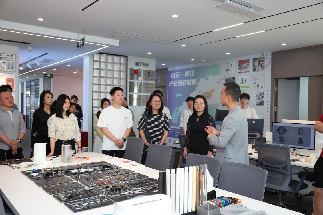 产品艺术设计调研团队实地调研了白云·廉江产业协作创新中心,重点考察了创作中心SCMF实训空间和廉江家电设计研发中心。创新中心负责人梁志亮以家电产品设计与制作为例为师生们分享CMF相关知识,详细解读"廉江智造"家电设计赛事体系。我校作为廉江市智能家电设计大赛协办单位,将与创新中心共建“赛教融通”培育机制,通过定向赛道设置、作品孵化支持等创新举措,推动学生创意设计向产业端有效渗透,构建“以赛促学、以产验创”的闭环生态,为“设计粤军”培养注入湾区产业基因。