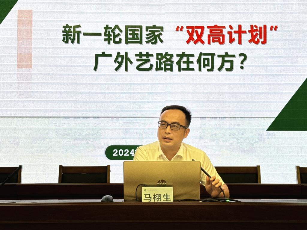 会上,学校党委书记马栩生教授作题为《新一轮国家“双高计划”广外艺路在何方?》的主题报告,以发展新质生产力推进高质量发展为目标,结合现代职业教育体系建设改革任务,全面梳理学校内涵建设的目标和工作重点。他首先从“底数清”的角度,根据国家职业教育发展的最新要求,对标首轮国家“双高计划”遴选条件,对学校的发展现状进行精准把脉。在“方向明”的阐述中,对照首轮国家“高水平专业群”基本条件及入选专业群布点,结合广东省高职院校高水平专业群建设项目中期检查结果,对广外艺“外、艺、幼、焙、老”专业布点以及7个省级专业群的实力现状进行全面分析,再结合教育部“双高监测平台”建设水平76项成果类别中,学校获得的25类国家级标志性成果情况,进一步明晰广外艺国双高的努力方向。在学校“当何为”的举措中,他指出学校要结合省高中期检查及下一阶段推进,围绕新一轮国家“双高计划”遴选,重点做好四项工作:一是要瞄准省高头部目标,在省高建设结束期前力争创新强校工程考核排位进入全省前列;二是要强化学前领军地位,举校建设好学前教育专业群,朝着全国前列奋进;三要聚焦重点突破领域,围绕申报“高水平专业群建设单位”,进行学前教育群整合、提升;四是要着力补齐短板,对照76项验收指标,尽快查漏补缺、补齐短板,并同步做好省双高和创强工作。