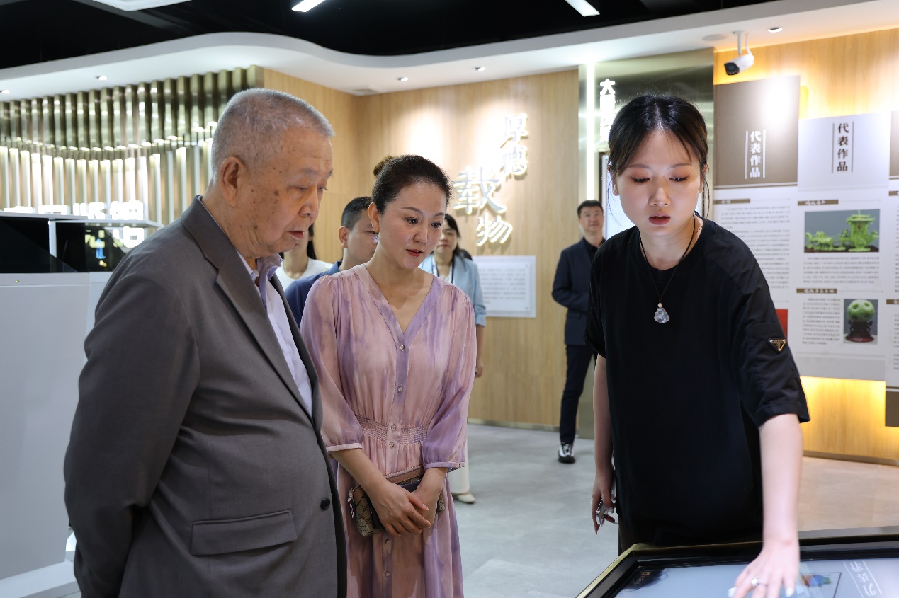 图:艺术设计学院教师为张天保展示玉雕数字作品
